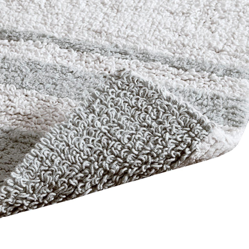 Update your bathroom with the Madison Park Cotton Bath Rug. This 100% cotton, reversible rug has both cut and looped cotton on each side in contrast fashion colors to a white ground for a spa look within your home. The soft highly absorbent cotton on both sides will feel fluffy and absorbent on your feet.
