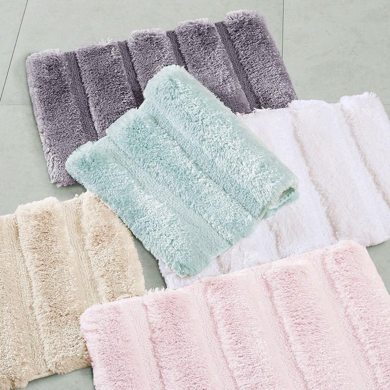 Transform your bathroom with the irresistibly soft Madison Park Tufted Pearl Channel Rug. The 1500GSM tufted rug features a high-low stripe design, in a grey color, made from macro spun fibers to create a charmingly casual look with a soft hand feel. Long-lasting and durable, this bath rug is stain resistant and machine washable to make cleaning a breeze.