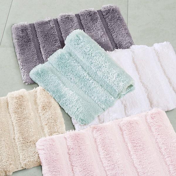 Transform your bathroom with the irresistibly soft Madison Park Tufted Pearl Channel Rug. The 1500GSM tufted rug features a high-low stripe design, in a seafoam color, made from macro spun fibers to create a charmingly casual look with a soft hand feel. Long-lasting and durable, this bath rug is stain resistant and machine washable to make cleaning a breeze.