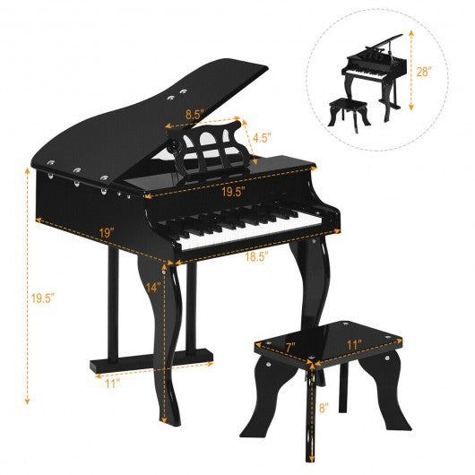 Classic 30 Key Baby Grand Wooden Piano with Bench-Black