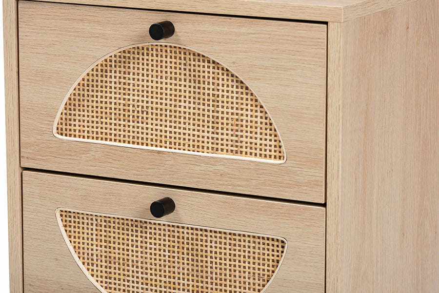 Combining retro design with modern geometry, the Ardon nightstand brings value to your bedside. Made in China, this striking piece combines natural rattan with a sturdy wood and metal frame for a tranquil, carefree display that exudes warmth. Two drawers provide secure storage space for all your bedroom essentials while reserving the tabletop for nightly use. Requiring assembly, the drawers of the Ardon feature natural rattan accents for a charming, exotic touch. With a crisp and clean silhouette, the Ardon adds character to any bedroom space.