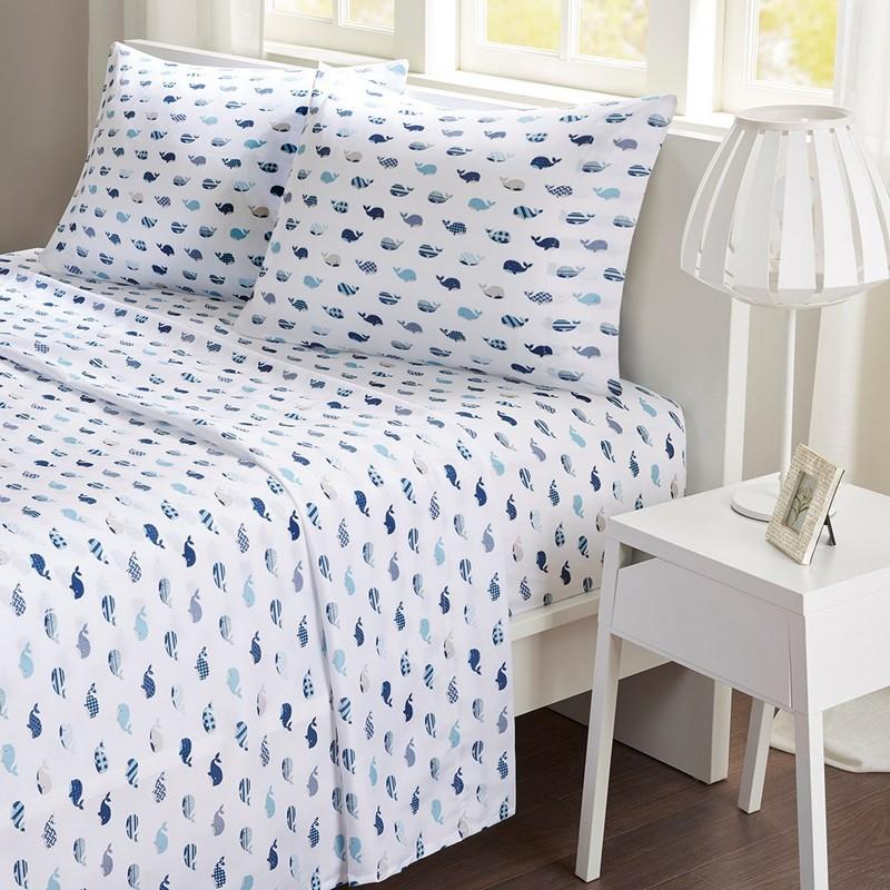 Delightful and charming, the Mi Zone Whales Microfiber Sheet Set is the perfect update for your bedroom. Fun designs are showcased in cool colors for a stylish look. The ultra-soft microfiber fabric is naturally wrinkle-free and makes these sheet sets super soft and machine washable for easy care. Set includes: 1 Flat Sheet, 1 Fitted Sheet, and 1 Pillowcase. The fitted sheet fits up to 14" mattress.