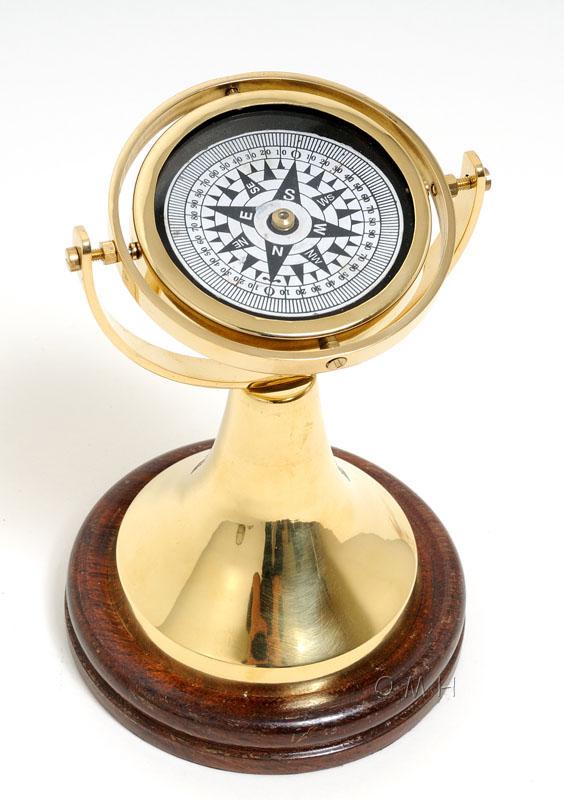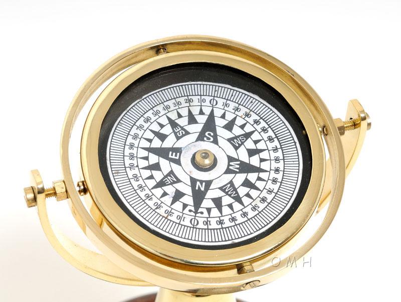 This is a fully functional gimbaled compass. It is made of high quality brass. Each component is crafted with the finest craftsmanship. It comes mounted on a brass stand with a wooden base. Also available in shiny brass finish. This compass will be a great addition to any nautical collection. The item dimensions are: L: 4.75 inches, W: 4.75 inches, H: 6.5 inches.