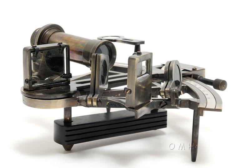This is a fully functional nautical sextant. It is made of high quality brass. Each component is crafted with the finest craftsmanship. Available in antique brass finish and it comes in a beautiful rosewood gift box. This sextant is a great addition to any nautical collection. The item dimensions are: L: 8 inches, W: 8.5 inches, H: 4.5 inches.