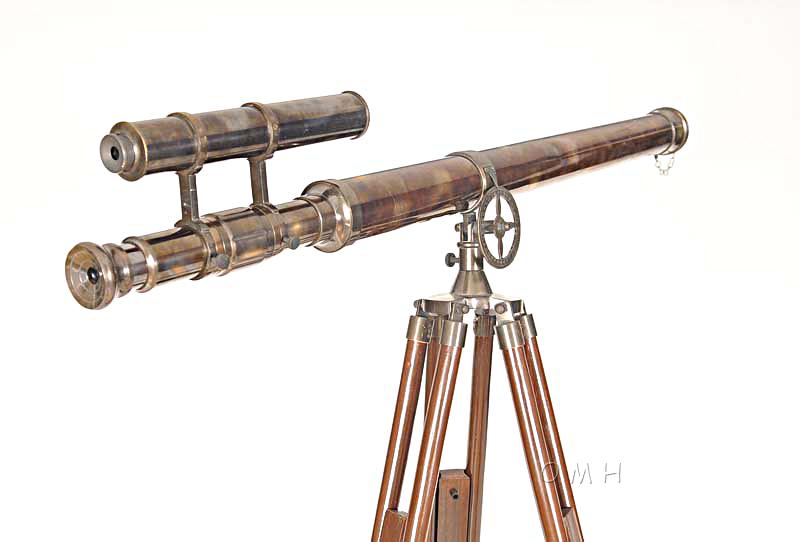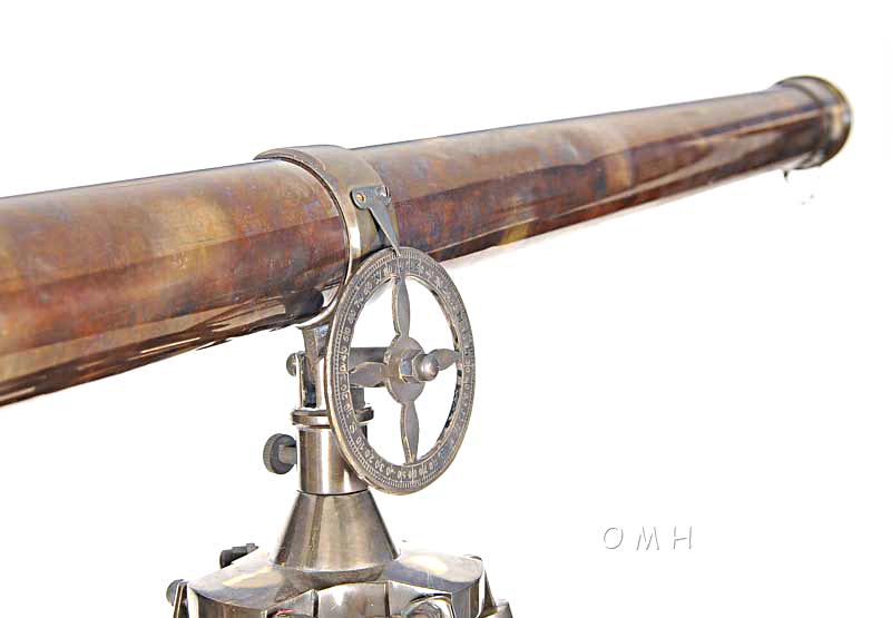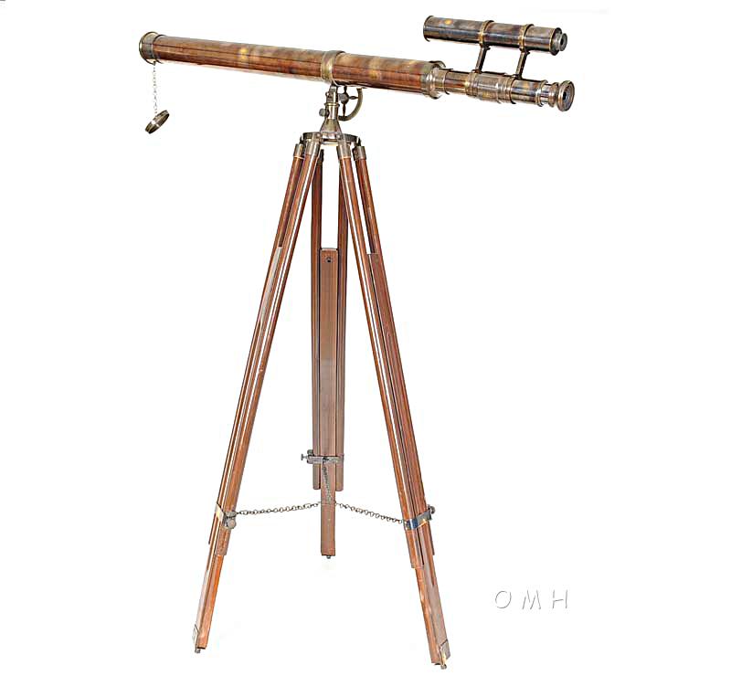 This is a fully functional harbor telescope. It is made of high quality brass with an ebony finish. Each component is crafted with the finest craftsmanship. This double barrel telescope comes with powerful optics and a viewing range of 3 to 4 kms. Fitted on a beautiful adjustable rosewood tripod, this telescope is a great addition to any nautical collection or home decor. The item dimensions are: L: 40 inches, W: 2.6 inches, H: 62 inches w/stand.