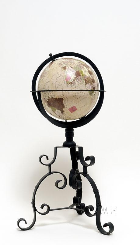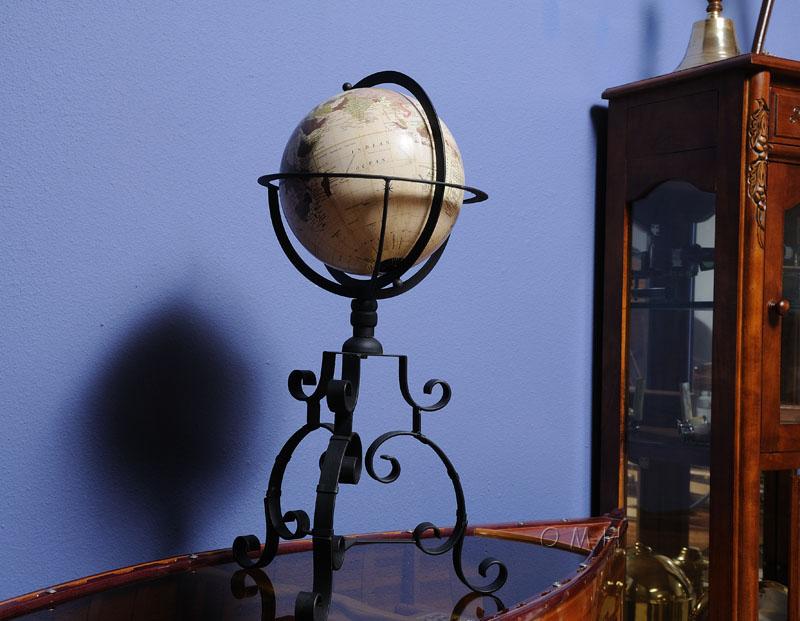 This globe is fitted inside metal rings and sit on a beautifully made metal stand. It gives a very classic look with very easy to use globe. The stand is tinted in an dark color that creates a perfect contrast. This will be a great addition to any nautical collection. The item dimensions are: L: 11 inches, W: 11 inches, H: 22.5 inches.