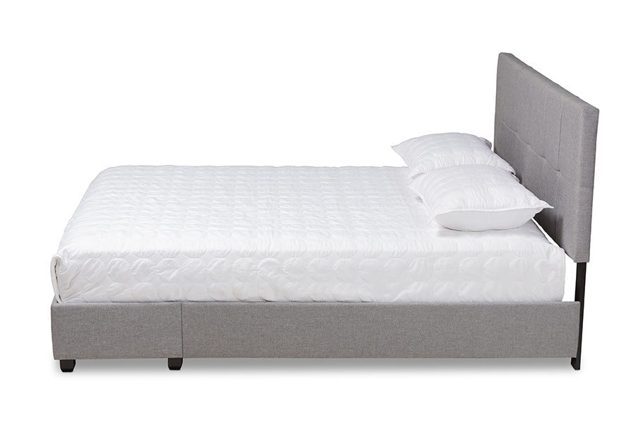 Baxton Studio Netti Light Grey Fabric Upholstered 2-Drawer King Size Platform Storage Bed