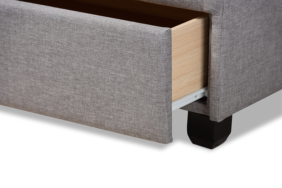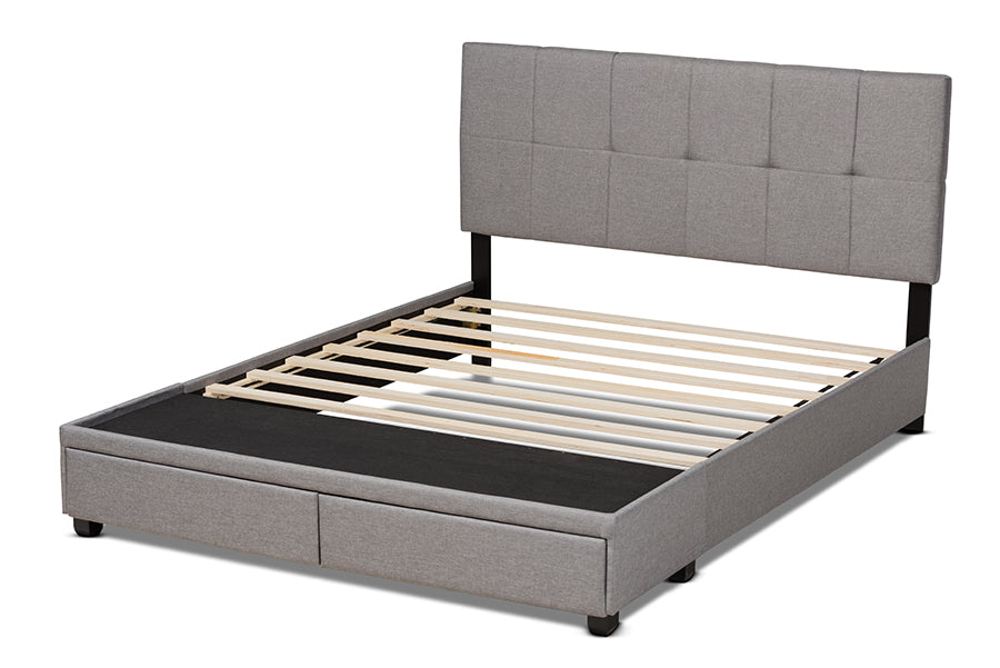 Baxton Studio Netti Light Grey Fabric Upholstered 2-Drawer Queen Size Platform Storage Bed