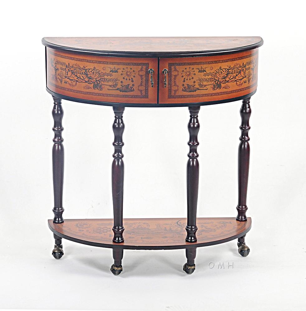 Add a touch of elegance to your bar area or dining room this stylish console cabinet. This nautical vintage styled, elegant, cabinet fits several accessories, equipped with four legs and wheels for home, office, or wherever you would like to receive guests in a classy manner. Whether it is open or closed this cabinet is a highlight to any room. Features: Overall dimension: 31.5" W x 12" D x 33" H Vintage finish 4 casters for easy relocation Wood and MDF construction Assembly required
