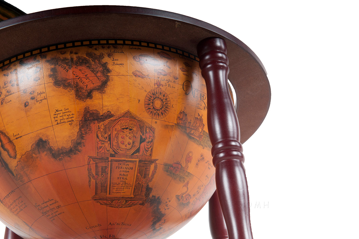 Beautiful globe mounted on a clean elegant stand. Features a nautical map on the exterior. Mythology inspired oceanic themed art cover the inner globes upper half. All of which center around a chess board that is placed within the globe. It makes the perfect edition to a home whether it be placed on a table, bookshelf, desk, or anywhere else. This is a perfect gift for anyone who wants a globe, unique chess board, or is moving into a new home.