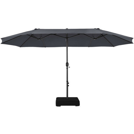 15 Feet Double-Sided Patio Umbrellawith 12-Rib Structure-Gray