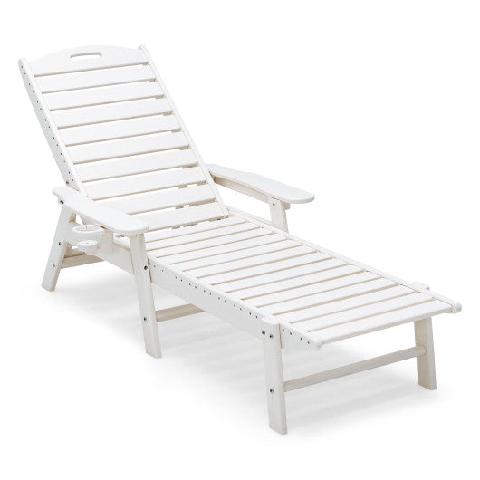 Weatherproof Patio Lounge Chair with Adjustable Back and Cup Holder-White