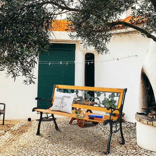 This garden bench features an iron-cast and ruggedly durable solid-wood structure. Are you looking for a resting bench ideal for your garden? A bench that is practical but also stylish? The well-painted finish gives it great weatherproof features making it perfect for any outdoor space. It comes with a reinforced structure that is sturdy and stable to seat 3 medium-sized adults at once. Its fine workmanship makes the whole unit smooth and without sharp parts or burrs. It comes with a chic appearance that will blend in well with any decoration style you have in your home. It's not just a decorative but also a functional bench that provides you with a place to sit and relax. It will be a great addition to your backyard porch patio poolside. Don't miss it! It consists of well-painted iron cast structure solid wood seat and backrest frame and PVC backrest pattern. It comes with a size of 49.5" x 20.5" x 29" and features a strong load-bearing capacity of up to 463 lbs. It's able to comfortably seat three medium-sized adults at the same time. Multiple iron supports are added to the seat and the structure to effectively improve overall load-bearing capacity security and stability. By using selected stainless-steel hardware the connections between bench parts are strong durable and not easily damaged. The entire structure is polished with rounded edges and the seat and the backrest feature a smooth surface making the entire bench safe and convenient to use. Its simple style allows it to blend in well with most decoration styles in your home. Easy to assemble with all instructions and parts provided in the package.