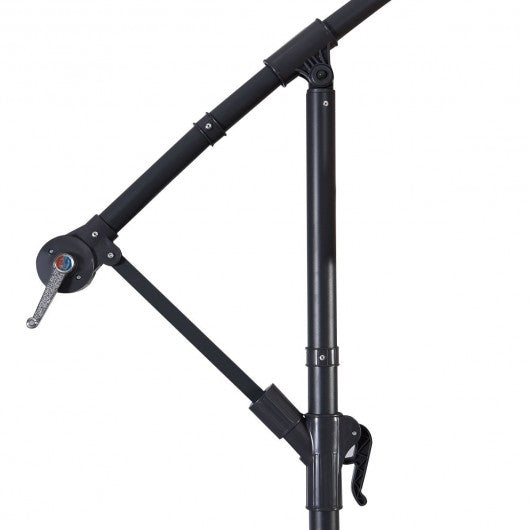 This 10' patio outdoor sunshade is perfect for decorating the areas around your house to beautify your surrounding environment. This is our hanging offset umbrella sun tent rain shelter and more all in one the parasol gives you instant portable protection from the elements regardless of your activity. The beach umbrella sets up in just three seconds. As a result you don't have to deal with finicky stakes or willowy tarps should a rainstorm roll in without notice. Just pop open the umbrella and ground stakes for extra stability. If you are looking for such an umbrella don't miss this one. Brand new and high quality Hanging umbrella with crank Tilt for more desired angles of shading Steel ribs and pole Frame with black powder coating finish Easy tilt operation hand-crank lift Ideal for commercial and residential use Stable for a beach umbrella sun tent rain shelter Steel pole with tilt and crank Large octagonal shape measures with air vent UV protective and water repellant Easy-to-operate We suggest you to not leave the umbrella open in windy conditions 8 firm steel ribs construction support the canopy stably Heavy duty steel cross base for stability Caution: Please fold and fasten the umbrella or take it down in blustery and thunderstorm day to protect the umbrella Keep the umbrella away from fireworks Children should be under the guidance of adults when using the umbrella Make sure lay sandbags blocks concrete or pavers onto the base to add more strength to the umbrella base
