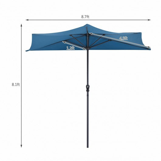 9Ft Patio Bistro Half Round Umbrella -Blue