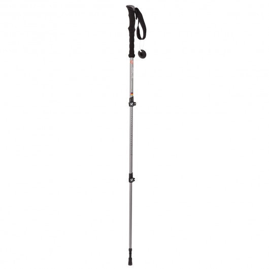 This stick has 3-sections telescopic poles. The on/off mechanism enables the safety of mountaineer. You can adjust the length of the pole through 3-sections. And it is designed to be used anywhere and anytime. The stick offers convenience to do something you want. It has anti-shock on/off mechanism which reduce stress on knees thighs shoulders and lower back. Besides ergonomic plastic handle grip offers you a feeling of maximum non-slip comfortable natural and warm. It is ideal for traveling due to its portability. Don't hesitate to buy it! Brand new and high quality Reduce stress on knees thighs shoulders and lower back 3-section telescopic pole provides suitable flexibility Adjustable length from approx 26" to 54"(65 cm to 135 cm) Ergonomic plastic handle grip offers a maximum non-slip comfortable natural and warm handhold Replaceable rubber ferrules for pavement indoor boardwalk or similar use Adjustable wrist strap which is excellent and easy to use Extended lightweight non-slip foam grip Durable lightweight and highest strength 7075 aluminum alloy Handmade excellence Shock absorber with superior characteristics Reduces strain on the wrist Outstanding mountaineering staff for hiking on rugged terrain Tough tested on the mountains of the world