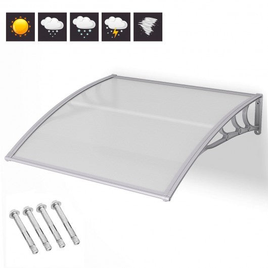 This 40" x 40" outdoor door window canopy awning is designed to be versatile that it can applied as a door canopy window awning and balcony cover. It is an ideal Protection from all weather elements. Besides adding a modern touch to the property it also provides protection from sun and rain. Combining with both contemporary appearance and function in mind this canopy is not only a functional cover but also a decoration to your living space. Here we have three color for choice. If you are looking for a window canopy do not hesitate to buy one! Must be installed on a masonry or concrete wall High quality and brand new 40" x 40" door window sun shade rain cover Ultraviolet resistance Specifically designed to resist weathering and rusting Safe easy and ready to install It is washable and quick dry Can be used for both residential and commercial applications Three color for choice