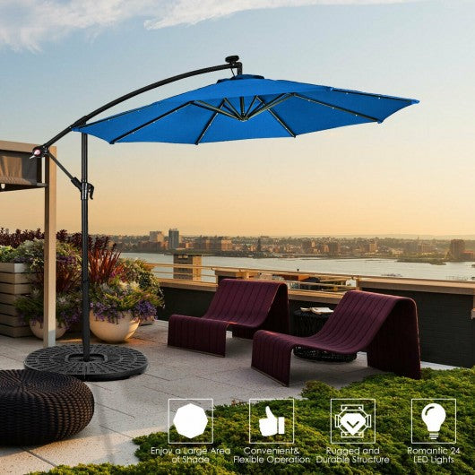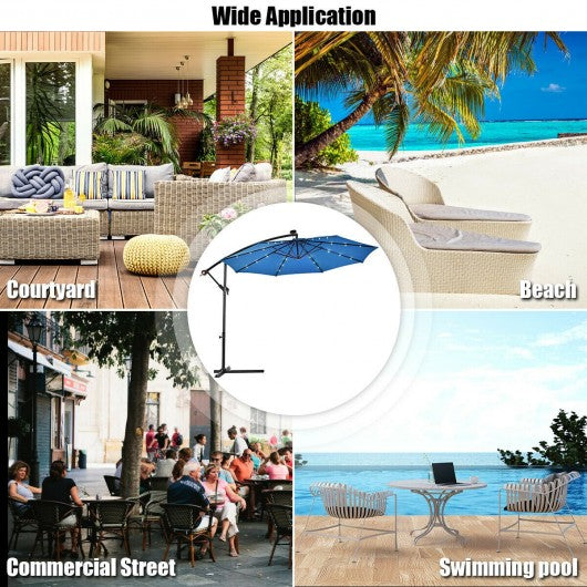 10' Patio Hanging Umbrella Sun Shade with Solar LED Lights-Blue