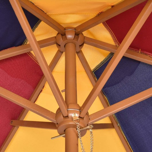 Specification: Color: Red + Yellow + Blue + Green Main Material: Fir wood Polyester fabric Size of Desk with Bench: 31" x 28" x 21" (L x W x H) Umbrella Size: 47'' x 55'' (Dia. x H) Net Weight: 16 lbs Weight capability of each bench: 88 lbs Weight capability of the table: 132 lbs Assembly required Package includes: 1 x Picnic table set (including an umbrella) 1 x Small pack of screws