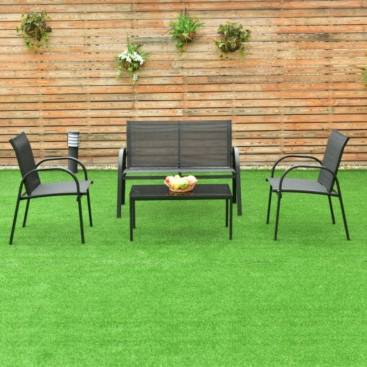 4 Pcs Patio Steel Frame Coffee Table Furniture Set