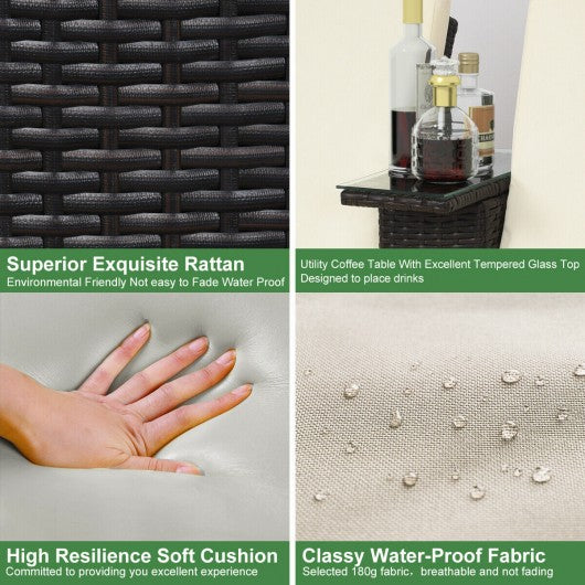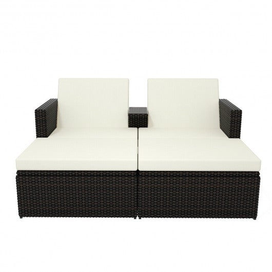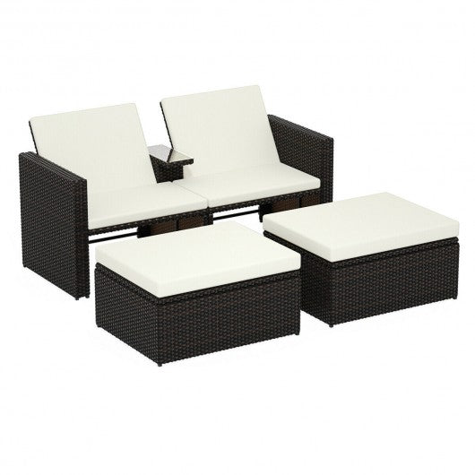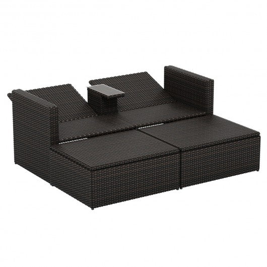 3 pcs Outdoor Rattan Wicker Chaise Lounge Love Seat