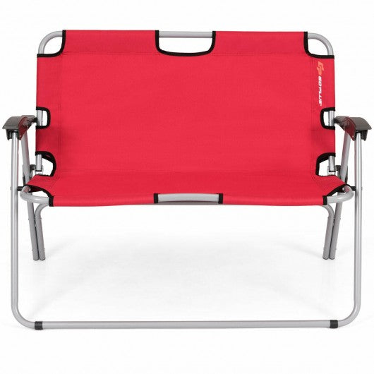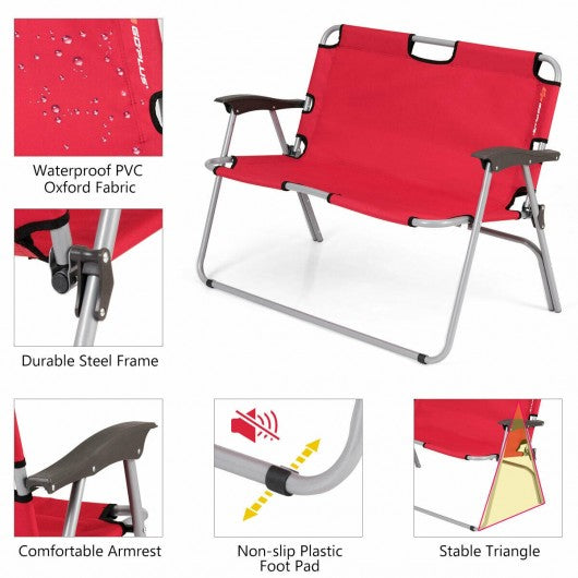 2 Person Folding Camping Bench Portable Double Chair-Red
