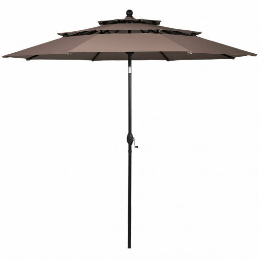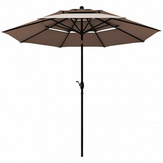10ft 3 Tier Patio Umbrella Aluminum Sunshade Shelter Double Vented without Base-Tan