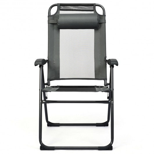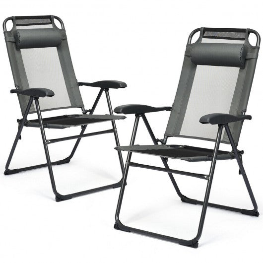 2 PCS Patio Adjustable Folding Recliner Chairs-Gray