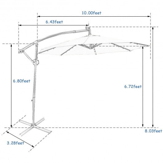 10FT 360° Rotation Solar Powered LED Patio Offset Umbrella-Blue