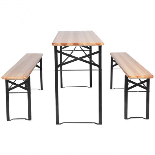 Specification: Color: Black (iron frame) Material: Iron frame Chinese fir wood boards Overall dimension of table: 70" x 18" x 29.5" (L x W x H) Overall dimension of bench: 70" x 9" x 18" (L x W x H) Weight capacity of bench: 500 lbs Package includes: 2 x Benches 1 x Table