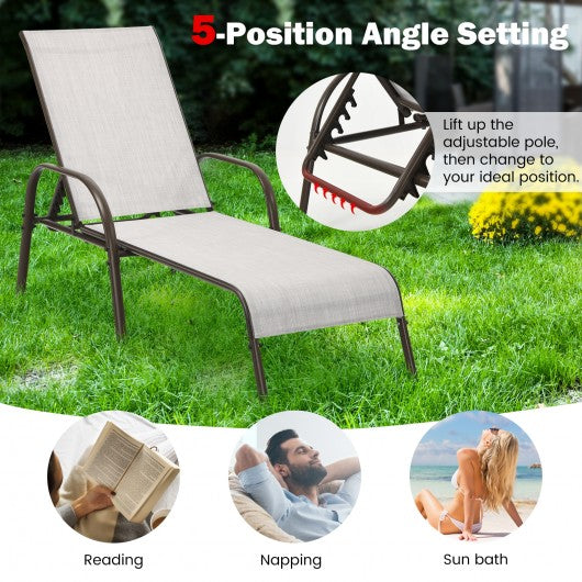 Adjustable Patio Chaise Outdoor Folding Lounge Chair with Adjustable Backrest-Gray