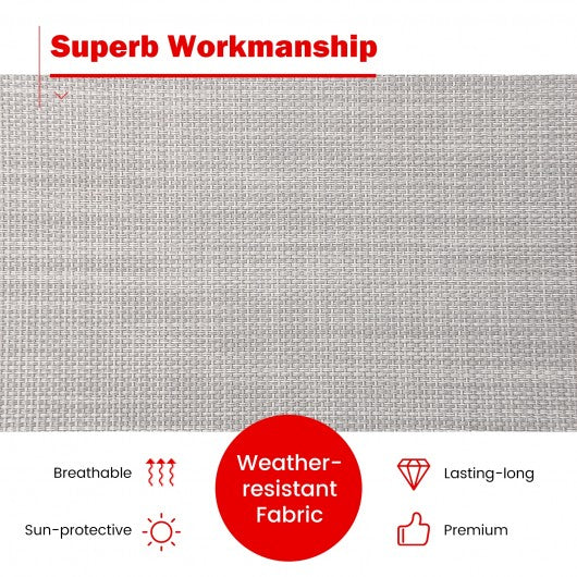 This practical outdoor lounge chair provides an ideal place for you to take a nap read or rest. Made from a heavy-duty powder-coated steel frame this recliner is rustproof and corrosion-resistant for long-term use. Its backrest and seat are wrapped in weatherproof and breathable fabric which will keep you cool even in hot summer. Most importantly this recliner has five adjustable backrest positions; you can choose various positions for maximum comfort. As well the wide seat and 2 curved armrests provide comfortable sitting or reclining experience. Additionally the lightweight design means this chair can be easily moved. It is a perfect choice to put it in the garden balcony poolside or deck. This outdoor chaise lounge chair has a simple structure and allows you to assemble it quickly. If you want to enjoy in your patio do not hesitate to buy it! Made of Sun-proof and breathable fabric for long-lasting use Powder coated steel frame provides sturdy support Thick legs and anti-slip pads provide extra stability 5 adjustable backrest positions to meet your various needs Ideal for your patio poolside backyard balcony and more Lightweight and easy to transport Smooth curved armrests for greater comfort Easy to assemble and maintain