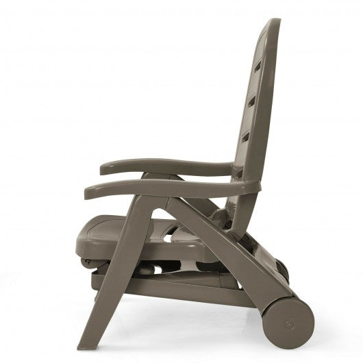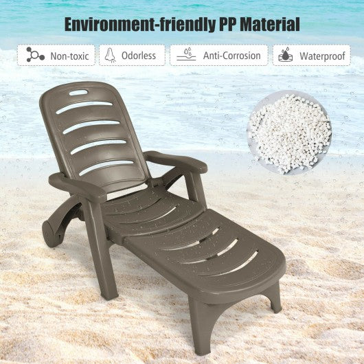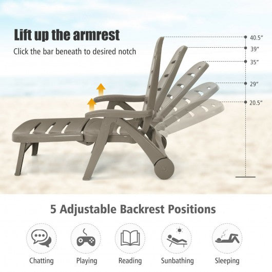 5 Position Adjustable Folding Lounger Chaise Chair on Wheels-Brown