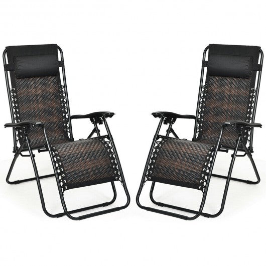2Pcs Folding Patio Rattan Zero Gravity Lounge Chair-Brown