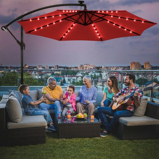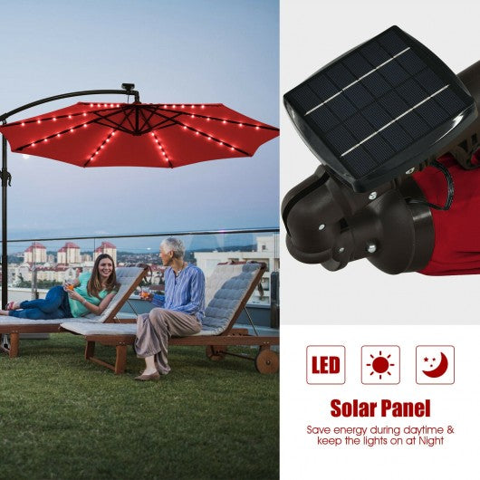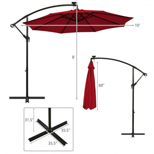 10 Ft Solar LED Offset Umbrella with 40 Lights and Cross Base for Patio-Wine