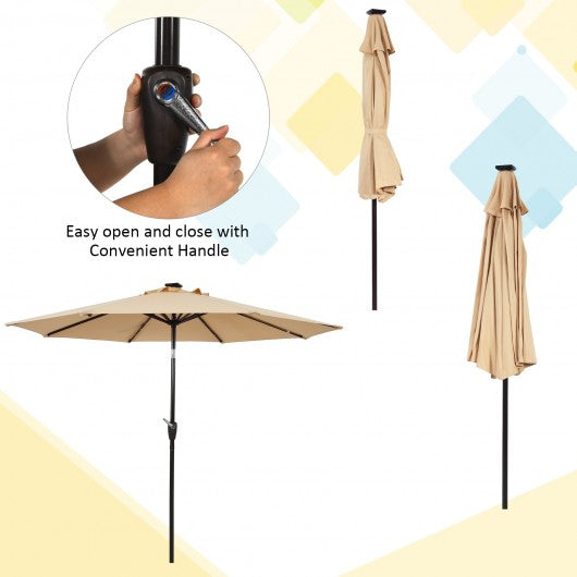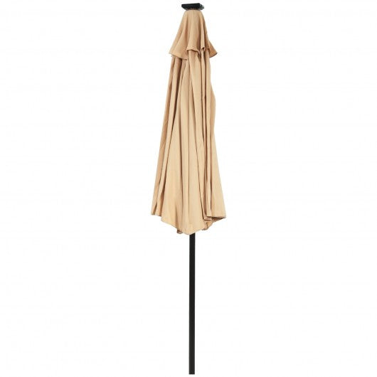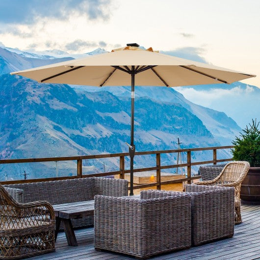 9 Ft and 32 LED Lighted Solar Patio Market Umbrella Shelter with Tilt and Crank-Beige