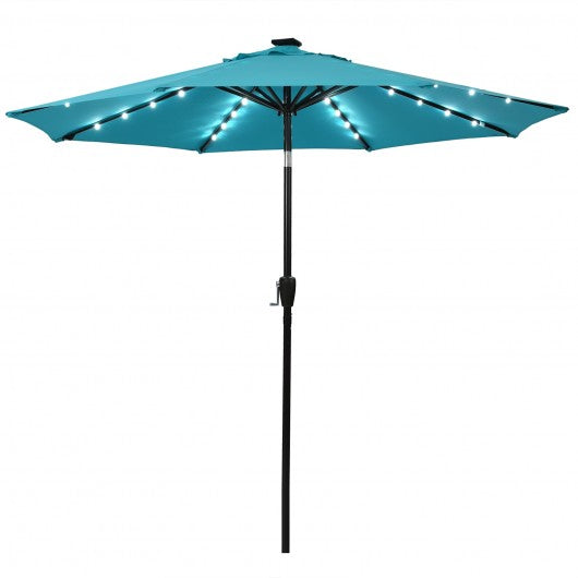 9 Ft and 32 LED Lighted Solar Patio Market Umbrella Shelter with Tilt and Crank-Turquoise