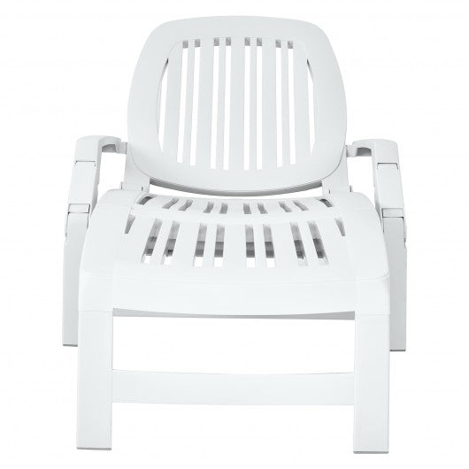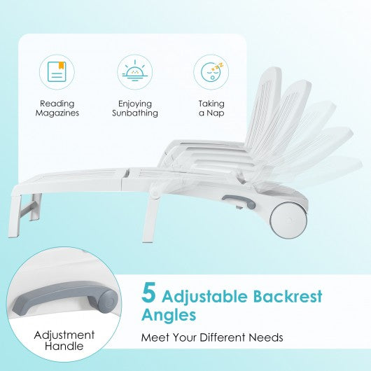 Adjustable Patio Sun Lounger with Weather Resistant Wheels-White