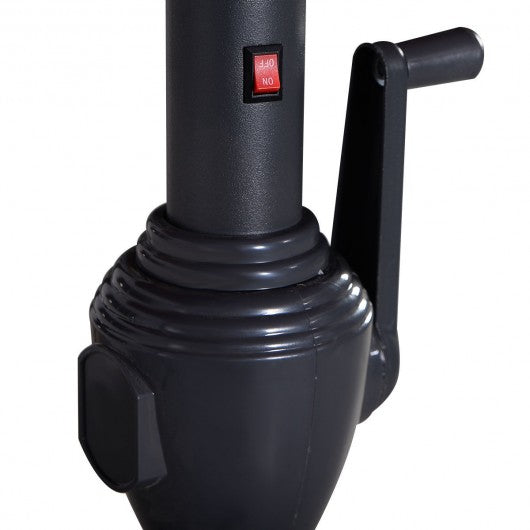 This 9 ft patio LED solar umbrella with crank is an ideal choice to decorate the areas around your house to make the surrounding environment more attractive. This is our 9 ft LED solar umbrella sun tent rain shelter and more all in one the parasol gives you instant portable protection from the elements regardless of your activity. It blocks the sun's rays throughout the day and lights up the night with its pre-installed solar-powered LEDs . Are you looking for such a decent umbrella? Don't hesitate to take it home. Brand new and high quality 6 firm steel ribs construction support the canopy stably Solar-powered 18 LEDs provide energy-efficient lighting Round solar panel on top of umbrella Easy tilt operation hand-crank lift Ideal for commercial and residential use Stable for a beach umbrella sun tent rain shelter Steel pole with tilt and crank Large hexagonal shape measures UV protective and water repellant Easy-to-operate We suggest that you not leave the umbrella open in windy conditions Can be mounted on stands or middle of table if holes available Stand Not Included