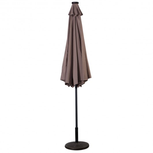 10FT Patio Solar Umbrella LED Patio Market Steel Tilt W/ Crank Outdoor New-Tan