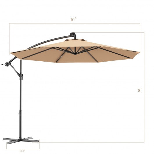 10 Inch Patio Hanging Solar LED Umbrella Sun Shade with Cross Base-Beige