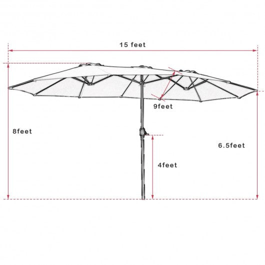 15' Twin Patio Umbrella Double-Sided Outdoor Market Umbrella without Base -Wine