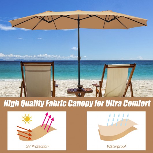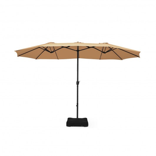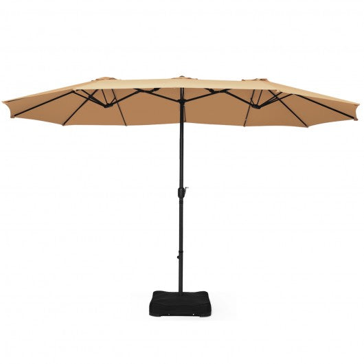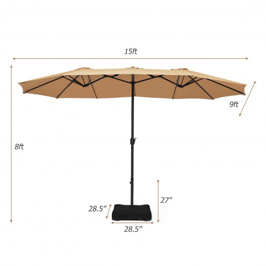 15 Foot Extra Large Patio Double Sided Umbrella with Crank and Base-Beige