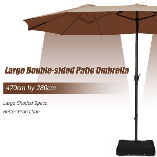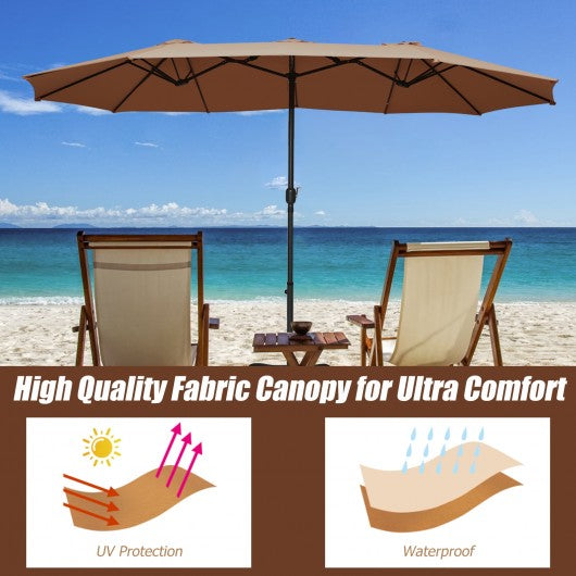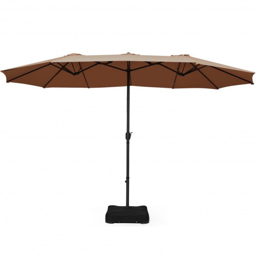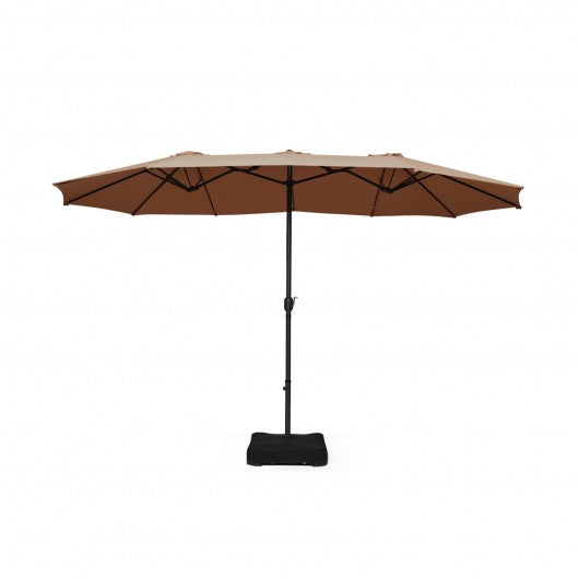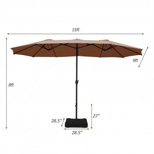 15 Foot Extra Large Patio Double Sided Umbrella with Crank and Base-Tan