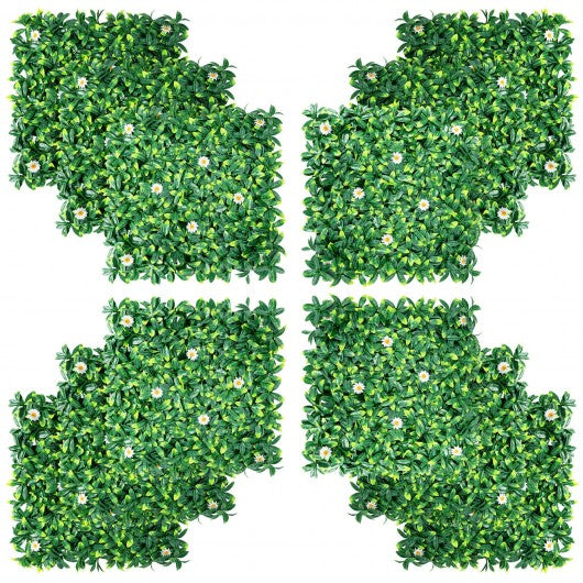 The artificial hedge plant set is an ideal choice for you. You can place this artificial daisy hedge which features with realistic appearance through 12pcs 2.6” tall and 4 layers of leaves in your patio backyard garden and walkway to beautify and create a personal space which is also a great decoration for weddings or parties. Made of premium PE material this artificial wall panel is durable and wear resistance. There are 12 screens in the package and you can assemble them in different ways to satisfy your demands. In addition this artificial hedge plant is waterproof and easy to maintain which helps to save your time and effort. With clear instruction and accessories included you can complete the assembly in a short time. If you are looking for it do not hesitate to buy it! Sturdy and durable PE material for a long time use Equipped with zip ties for easily attaching to the fence Suitable distance between each leaf facilitates air circulation The faux hedge can be trimmed to fit specific shapes and dimensions Waterproof surface is easy to maintain and clean Lightweight panels are easy to move and transport Ideal for various occasions such as balcony yard patio garden and so on Thick and dense leaves ensure better shading