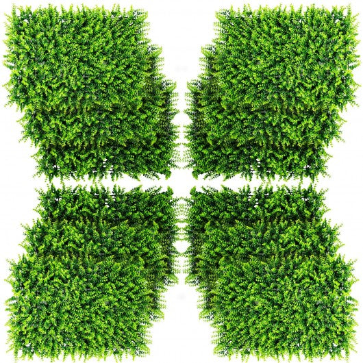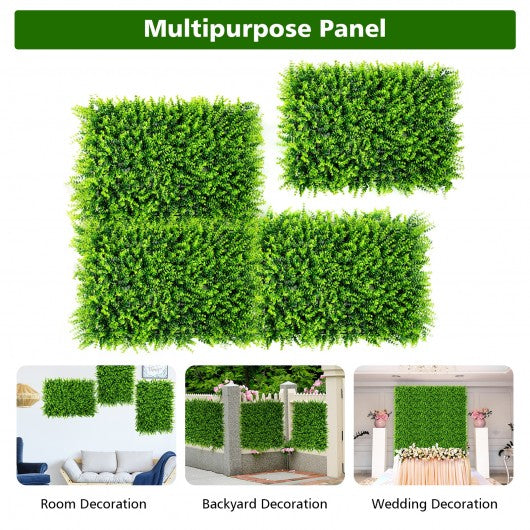 The 12 tiles with 6-layer leaves at 3.2" high will add green and natural screen to your backyard fences. This PE artificial plant mat with SGS certification so it can keep a fresh appearance all year round. It takes only a few steps to complete the installation of the artificial lawn. The snap locks mechanism helps to connect different tile panels. You can use the zip tie to fix the artificial lawn on the fence. The artificial Eucalyptus panel is suitable for different occasions including balcony office hotel restaurant wedding and so on which is a cost-efficient way to beautify your space. If you are looking for a product like that do not hesitate to buy it! Brand new PE material with SGS certification is durable 6-layer of 3.2" tall leaves for a realistic and lush natural appearance Sun protection is designed for long-term bright colors Include step by step instruction manual for ease of installing Convenient snap locks help to interlock different tiles Zip ties to fix the artificial Eucalyptus effortlessly Suitable for various occasions such as courtyard wedding restaurant