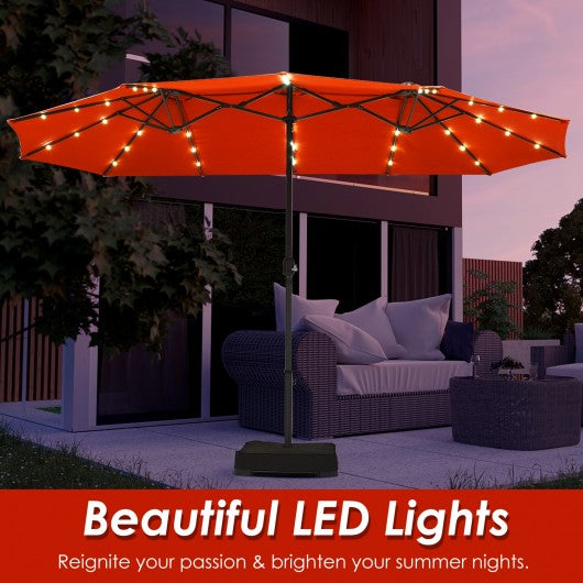 15 Ft Solar LED Patio Double-sided Umbrella Market Umbrella with Weight Base-Orange