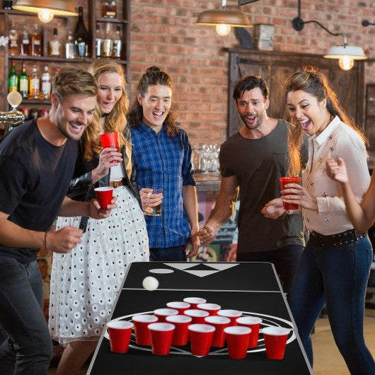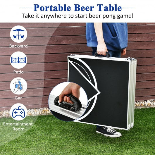 This beer pong table will definitely add fun to your holiday! Whether it's a barbecue party with friends or a family dinner this beer table is a perfect choice. It is durable lightweight and portable and can be used as this holiday partner. This game table is suitable for many occasions. You can bring it to play with your family and friends when you have a meal in the wild at a home party or at a birthday party. Let us feel the joy with family and friends! If you are looking for a table like this do not hesitate to place an order! With a solid and sturdy structure can be used for a long time. Made of aluminum alloy melamine waterproof & deformation proof. Provide you and your family&friends with fun. Desktop does not fade or bent long storage time. 2 adjustable height levels to enjoy the fun. Easy for installing carrying & cleaning. As an interesting game tool; promote closeness between friends.