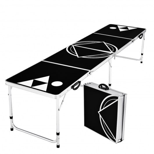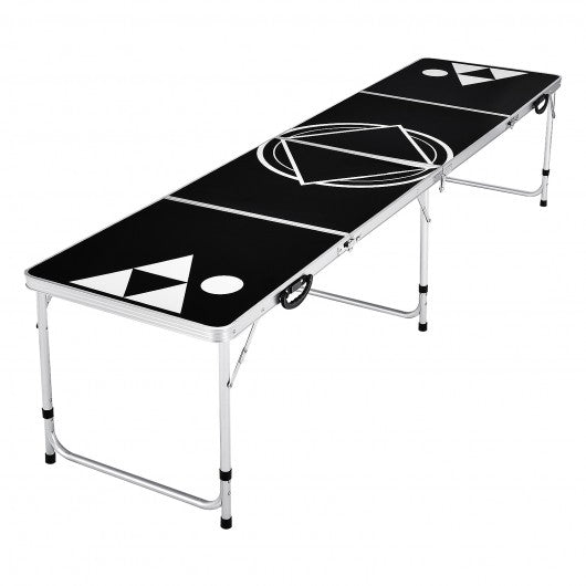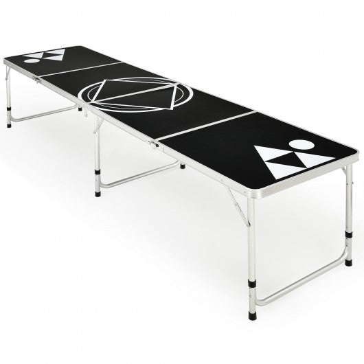Specification: Color: Black and white Table dimension: 8' x 23.5” x 21.5”-27.5” Material: Aluminum alloy melamine Net weight: 18.5lbs Package includes: 1 x Beer pong table