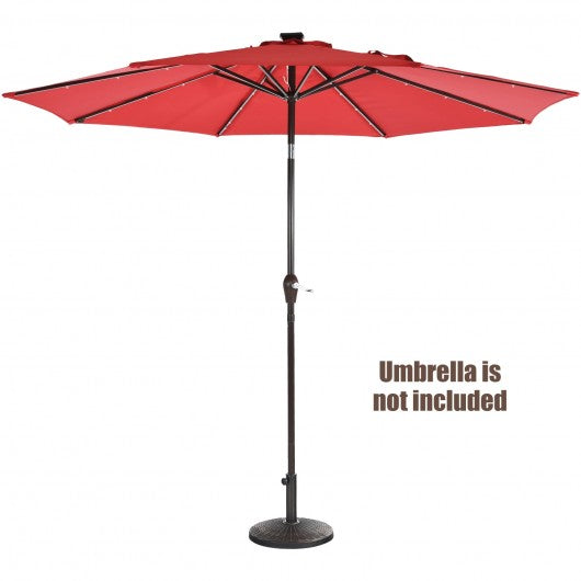 Find a great partner for your purchased patio umbrella with this patio resin umbrella base! Made of high quality resin our patio umbrella base is rustproof waterproof and durable capable of long time usage. The solid base with heavy weight ensures that your umbrella will not move while using it. On the other hand the adjustable knob helps to fix umbrellas as well. Featuring wide compatibility the base fits Φ1.5" or Φ1.9" umbrella poles. What's more the attractive design provides an inviting decoration to blend with any other outdoor furniture making it suitable for garden backyard poolside etc. If you are looking for a patio resin umbrella base like this do not hesitate to place an order! Waterproof and anti-rust resin stands the test of time Heavy duty base supports your umbrella stably and firmly Fits for Φ1.5" (38mm) or Φ1.9"(48mm) umbrella poles Fastens or looses umbrella holes easily with adjustable tightening knob Makes your outdoor space more charming with the exquisite pattern design Suitable for garden backyard poolside and hotel etc Easy to install with a clear instruction